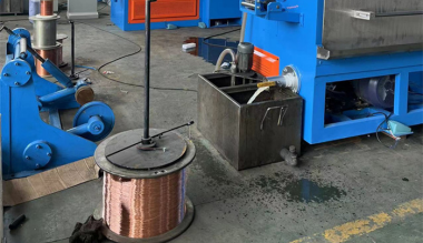 Fine wire drawing machine with annealer is special for drawing and annealing copper wires 0.5-1.38 mm from 0.10-0.40 mm. Finished wire is wound by 300 steel bobbin.