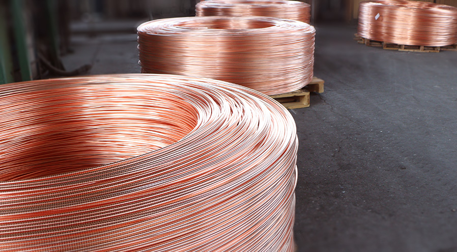 The copper liquid of the continuous caster crystallizes rapidly in the crystallizer and continuously produces copper rods.