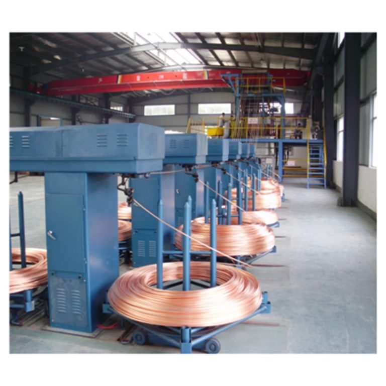 Oxygen free copper rod upcast machine(copper rod upward continuous casting machine) uses cathode copper or scrap copper as raw material, to produce oxygen-free copper rod/ strip(foil billet)/tube.